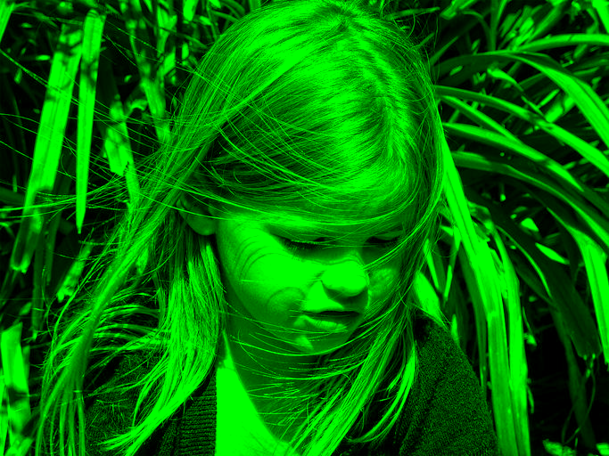 This again is similar to its HSV counterpart, which in this case would be HSV Saturation. The LCh Chroma takes the Chroma information from the top layer and combines it with the Lightness and hue from the bottom layer. I repeated what I did in the HSV Saturation images to get this for the Dog image combined with a pure green layer (00ff00).