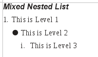 This shows a mixed nested list that has both numbered and bulleted levels.
