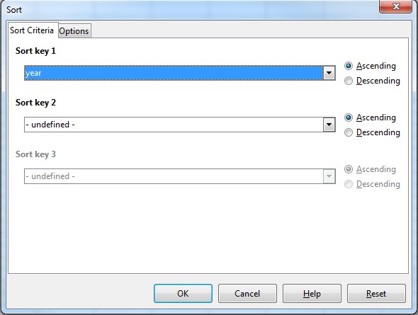As you can see you can choose several criteria, and it will sort one within another. For example, if you chose Month for the second sort key, the data would first be sorted by year. then, for all data points with the same year, they would be sorted by month.